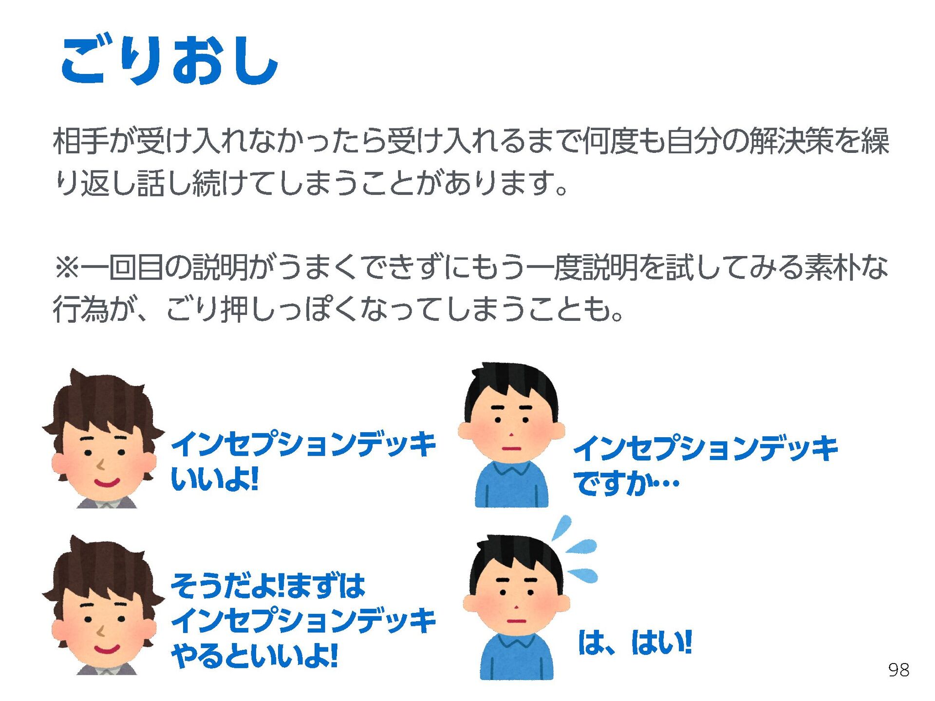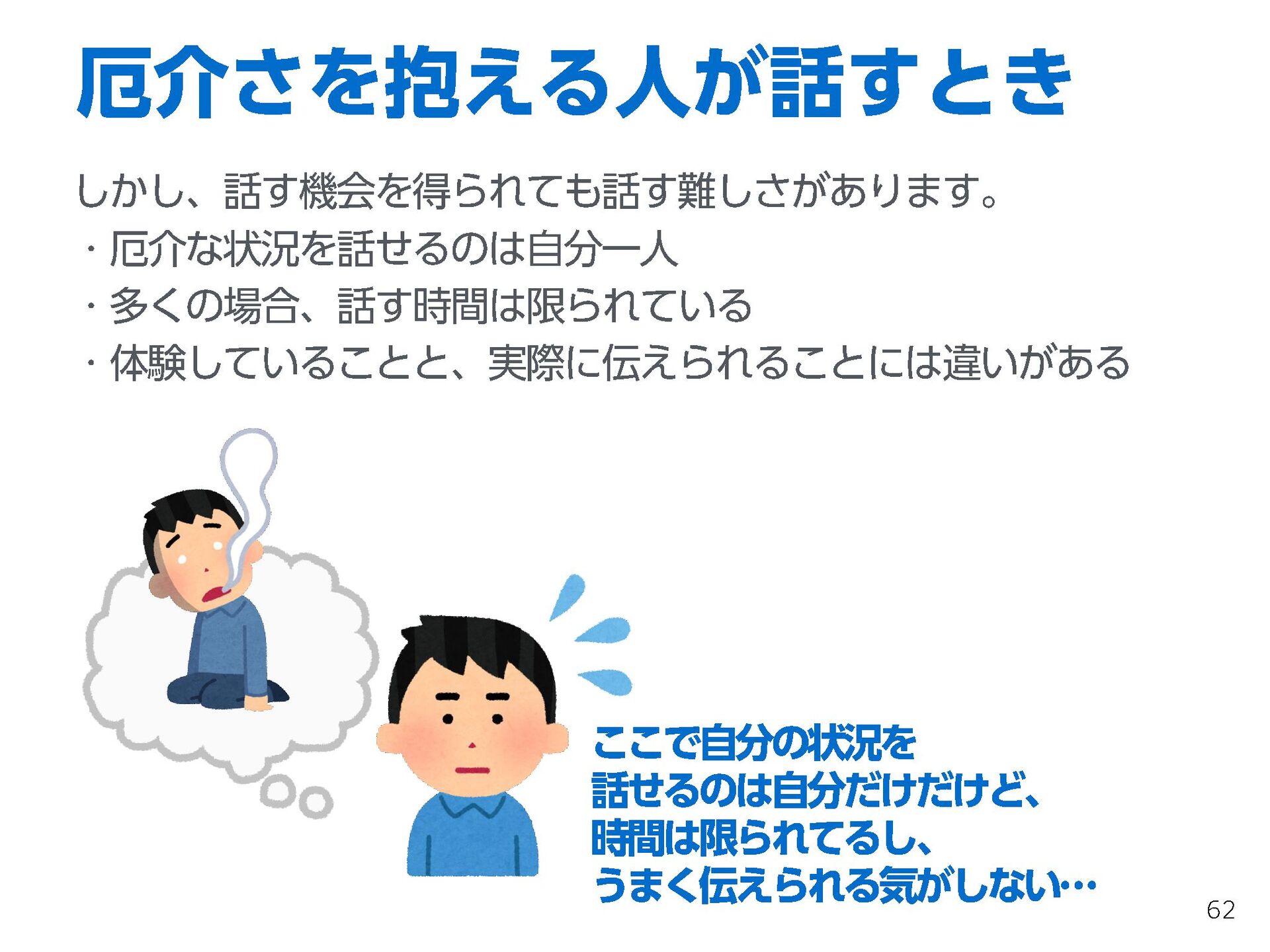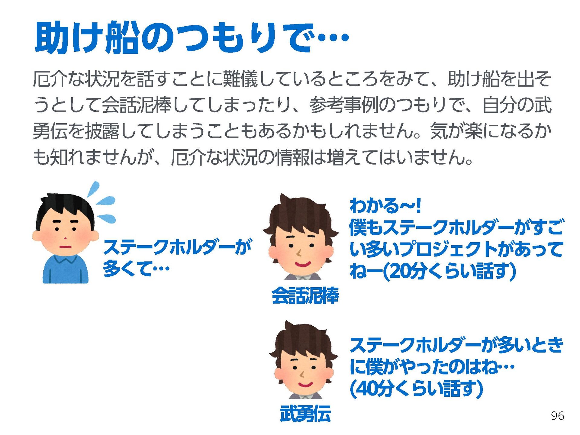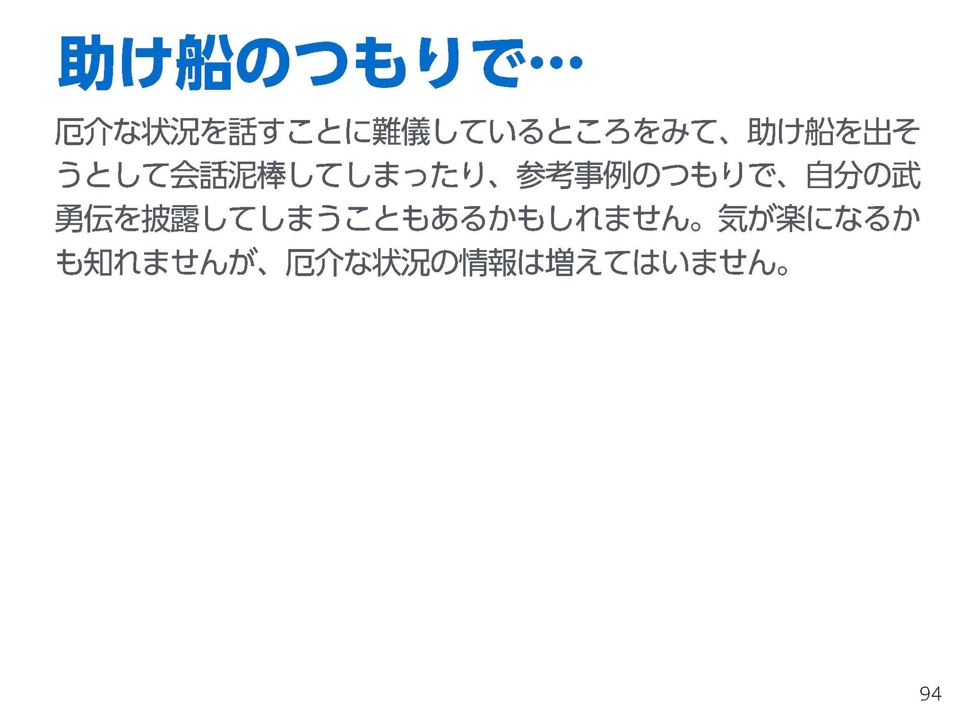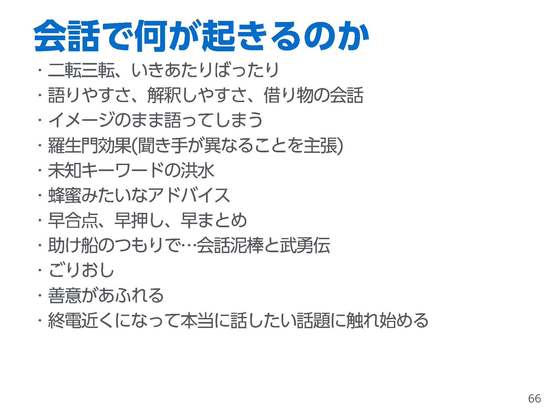 これらの活動の中で、私自身が劇的と感じる体験が何度もあり、自分の考えやふるまいを見直す結果に繋がりました。この体験は問題解決の書籍を学ぶことよりも、自分にとって大きな衝撃となり、強く興味を持つようになりました。それ以後、自主開催も行い、当事者にとって劇的なアウトカムを再現する試みを行ってきました。