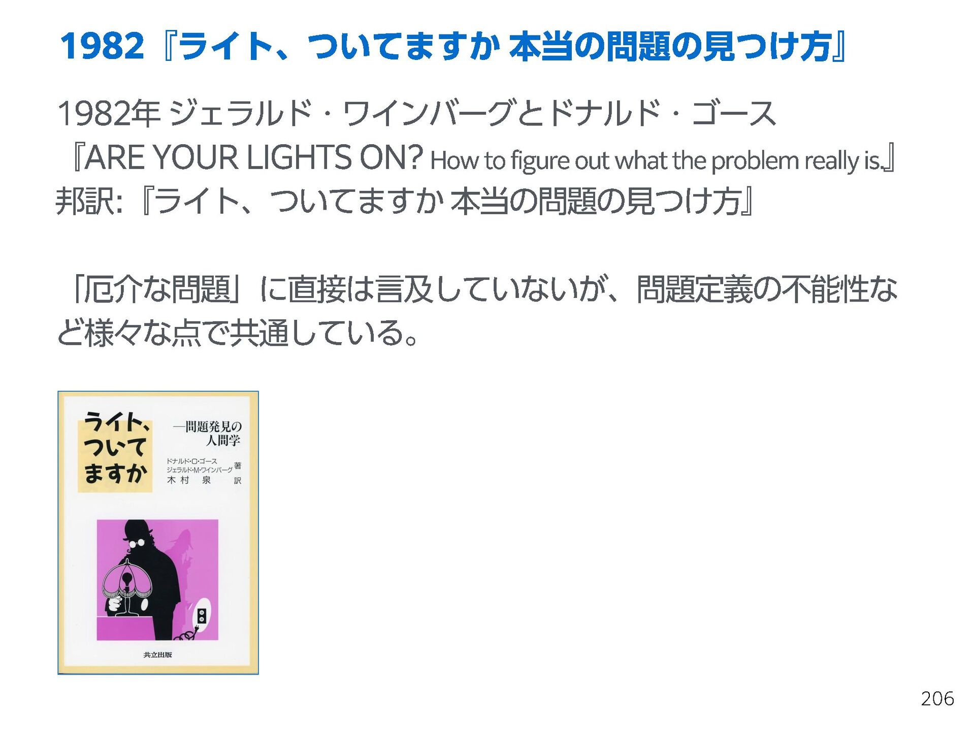 『ライト、ついてますか 本当の問題の見つけ方』ARE YOUR LIGHTS ON? How to figure out what the problem really is.