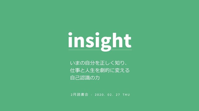 insight いまの⾃分を正しく知り、 仕事と⼈⽣を劇的に変える ⾃⼰認識の⼒ 2 ⽉ 読 書 会 -