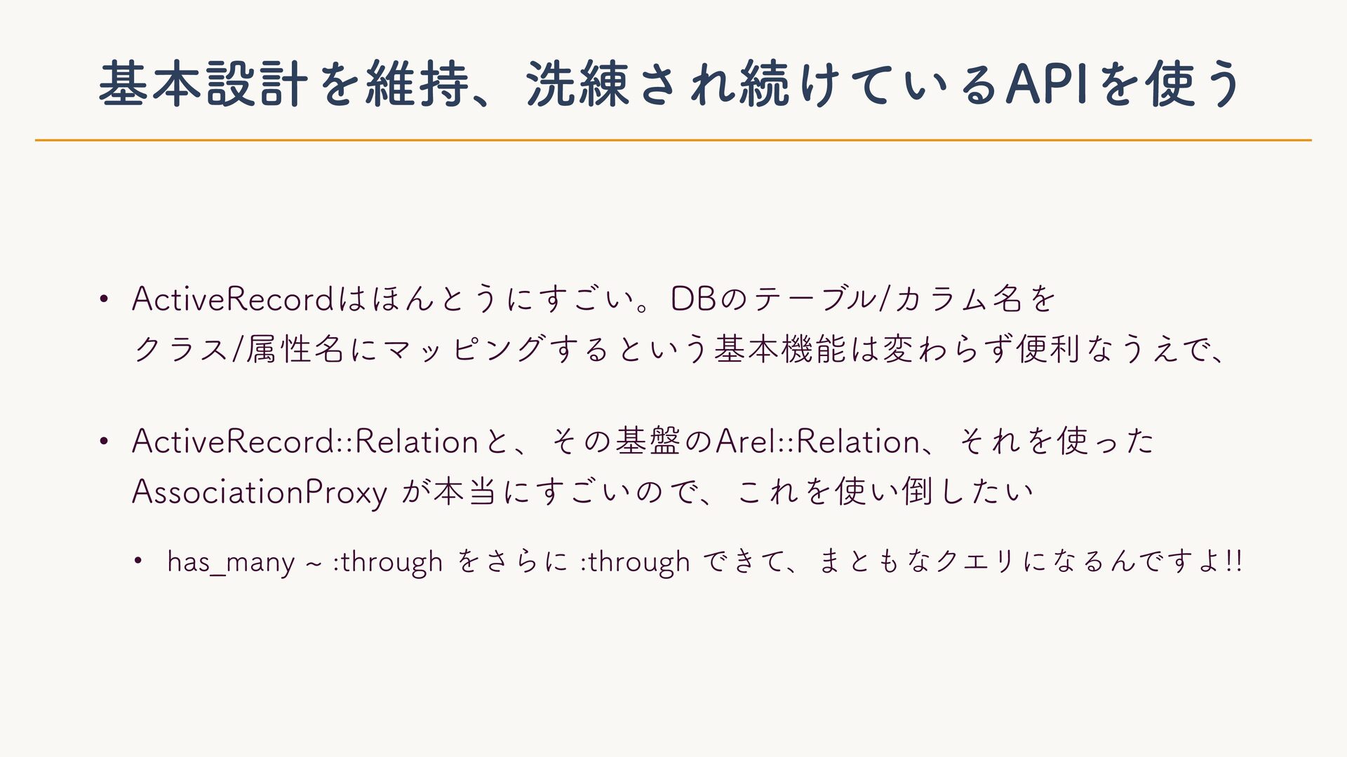 w ͜ͷϛϥΫϧ🦄ͳ"DUJWF3FDPSEΛ࢖͍౗͠·͠ΐ͏ w ʮͪΌΜͱͨ͠ςʔϒϧߏ଄ʯΛఆٛͯ͠ɺͦΕΛਏ͘ͳ͘׆༻Ͱ͖Δ ͜ͷΞϓϩʔνͷ3BJMTͷؾ࣋ͪ ͦ͏͸͍ͬͯ΋ूܭΫΤϦΑɺɺɺΈ͍ͨͳͷ͸͋ΔΜͰ͕͢ɺ͋Ε͸ʮΞΫςΟϒϨίʔυύλʔϯʯΛ ద༻͠ͳ͍ํ͕ྑ͍ϑΥʔε͕͋ΔΘ͚ͳͷͰɺ͞ΒʹผʹΞϓϩʔνͷ΄͏͕ྑ͍ͱࢥͬͯ·͢ɻ