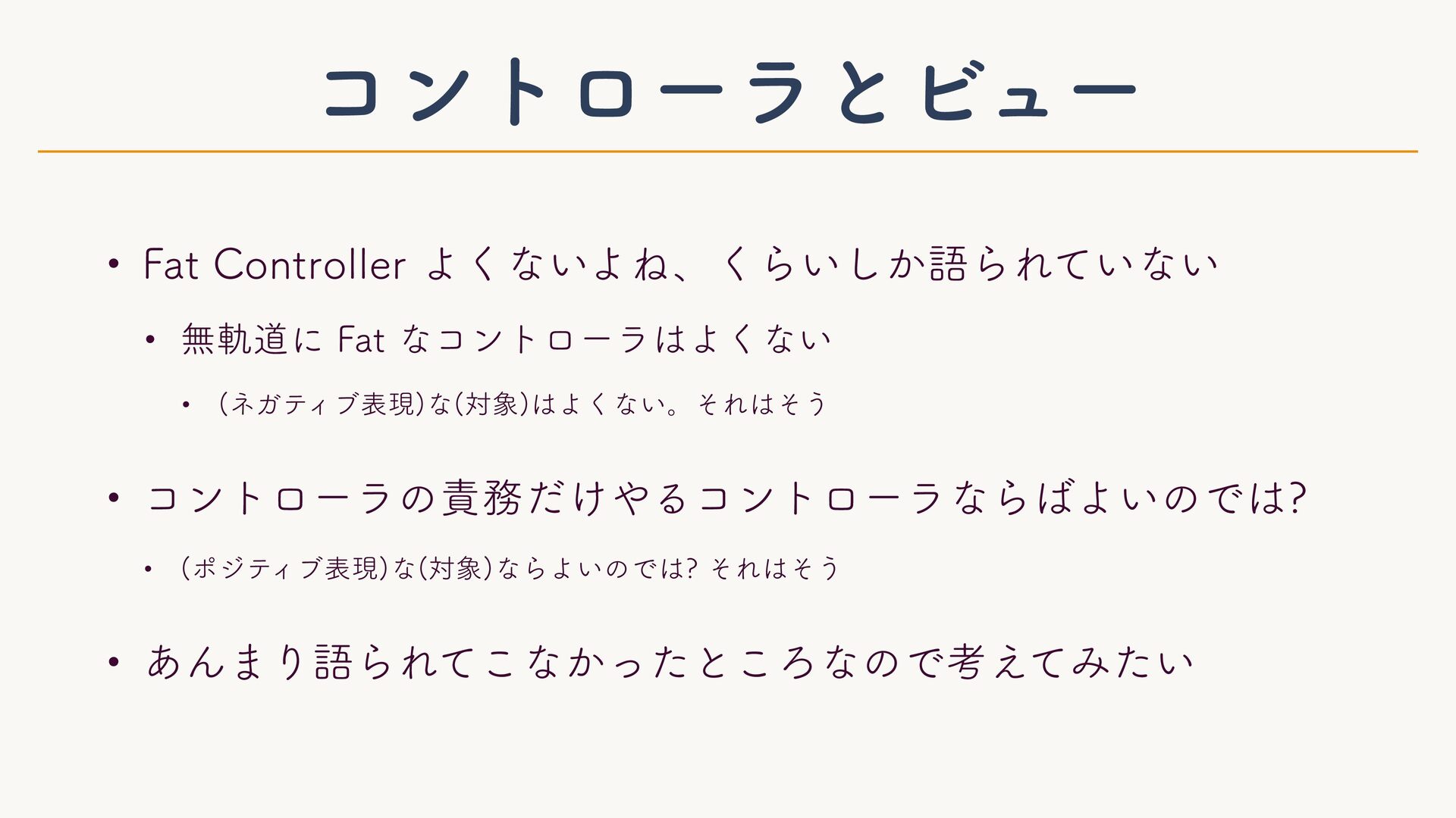1. ίϯτϩʔϥͱϏϡʔ w 'BU$POUSPMMFSΑ͘ͳ͍ΑͶɺ͘Β͍͔͠ޠΒΕ͍ͯͳ͍ w ແيಓʹ'BUͳίϯτϩʔϥ͸Α͘ͳ͍ w ωΨςΟϒදݱ ͳ ର৅ ͸Α͘ͳ͍ɻͦΕ͸ͦ͏