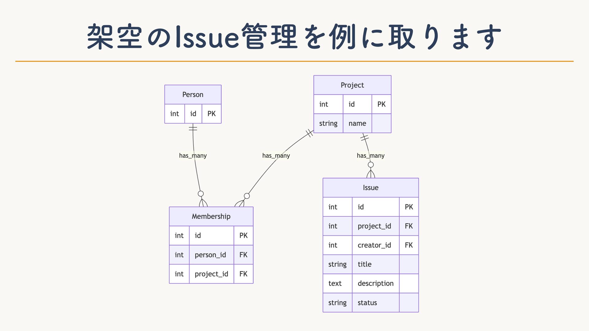 # HTMLදࣔ༻ͷؔ࿈σʔλ·ͰίϯτϩʔϥͰϩʔυ @issues = @project.issues .includes(creator: :avatar) # HTML༻ .order(updated_at: :desc) end end # app/views/issues/index.html.erb <% @issues.each do |issue| %> <div> <%= image_tag issue.creator.avatar.url %> <%= issue.title %> </div> <% end %> ͜͏͍͏ͷΛ