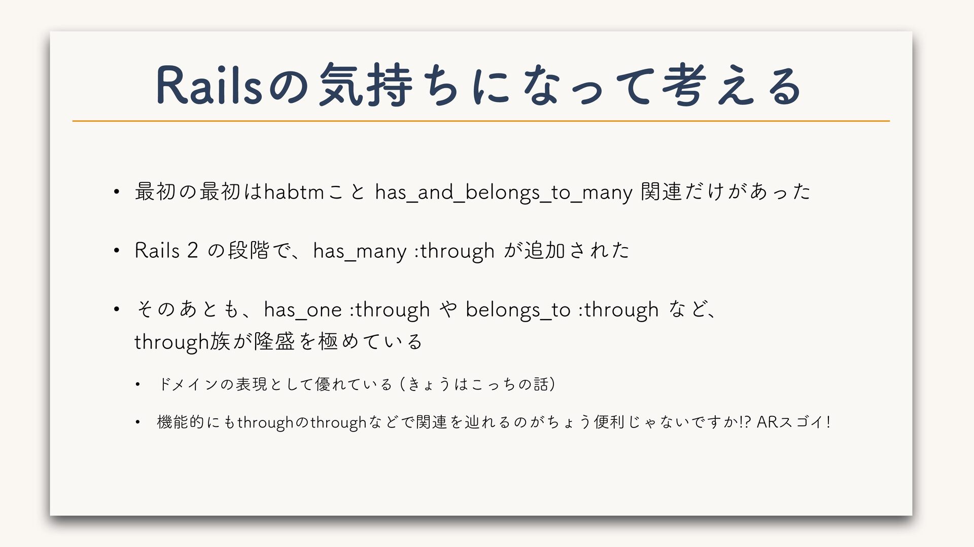 9. w "DUJWF3FDPSE3FMBUJPO͸ɺ3%#ͷؔ܎୅਺తͳૢ࡞ બ୒XIFSF ࣹӨTFMFDU ݁߹KPJO Λ3VCZΦϒδΣΫτͱͯ͠ѻ͑Δ w ཧ࿦ͦͷ΋ͷͰ͸ͳ͍͕ɺయܕతͳ8FCΞϓϦͰ΍Γ͍ͨ͜ͱ͸͍ͩͿͰ͖Δ w 3FMBUJPOಉ࢜ͷνΣʔϯ΍NFSHFͱ͔Ͱ͖Δͷ͘͢͝ͳ͍Ͱ͢