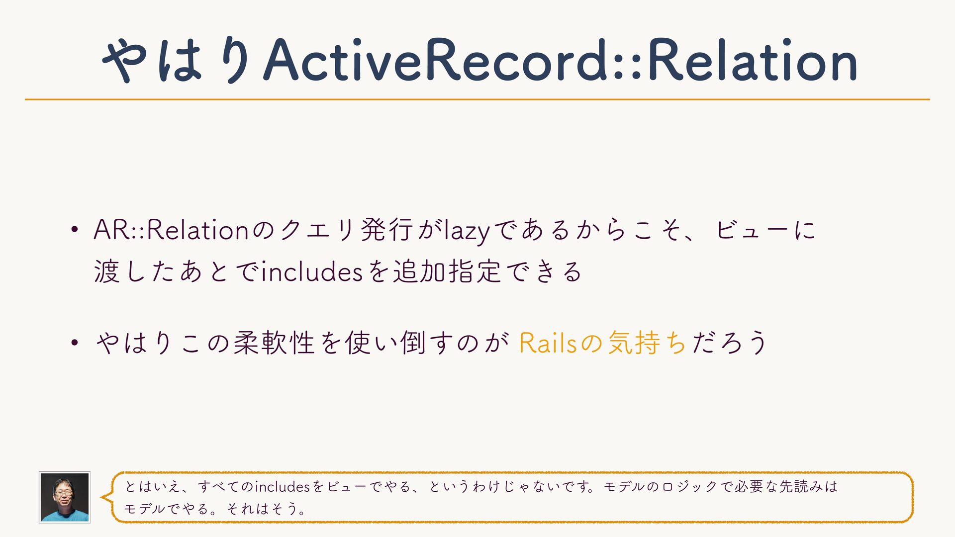 # ίϯτϩʔϥ͸࠷খݶɻAR::Relationͷ··౉͢ @issues = @project.issues.order(updated_at: :desc) end end # app/views/issues/index.html.erb <% @issues.includes(creator: :avatar).each do |issue| %> <div> <%= image_tag issue.creator.avatar.url %> <%= issue.title %> </div> <% end %> ͜͏͍ͨ͠