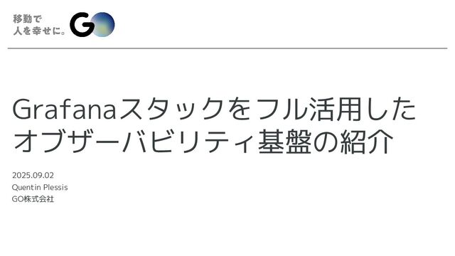Grafanaスタックをフル活用した オブザーバビリティ基盤の紹介 2025.09.02 Quentin Plessis GO株式会社
