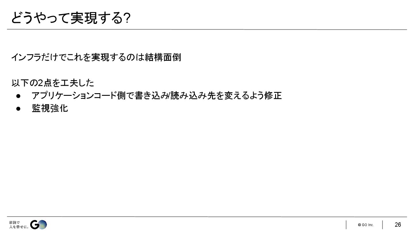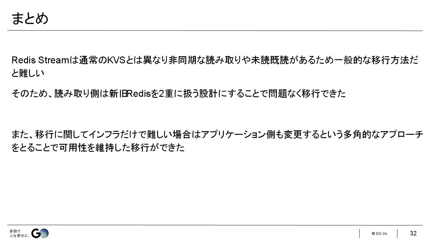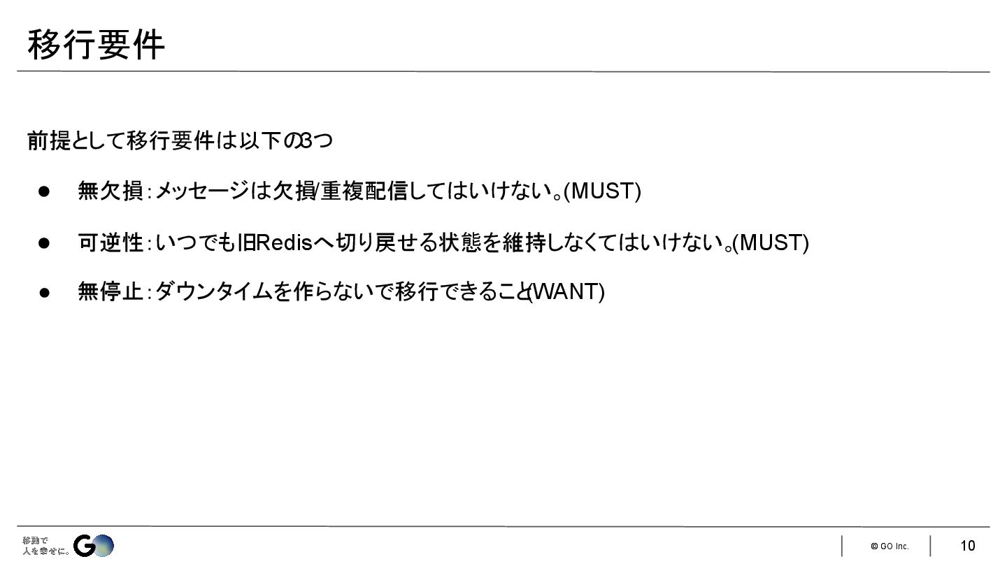 7. © GO Inc. 一般的な以下の3つの手法が使えない • アプリケーション側でダブルライト • SLAVEOFコマンドでデータを移行先Redisインスタンスにレプリケーションさせる • サービス自体をメンテナンスモードにして旧