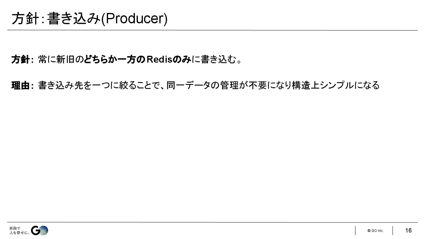 5. © GO Inc. 一般的な以下の3つの手法が使えない • アプリケーション側でダブルライト • SLAVEOFコマンドでデータを移行先Redisインスタンスにレプリケーションさせる • サービス自体をメンテナンスモードにして旧