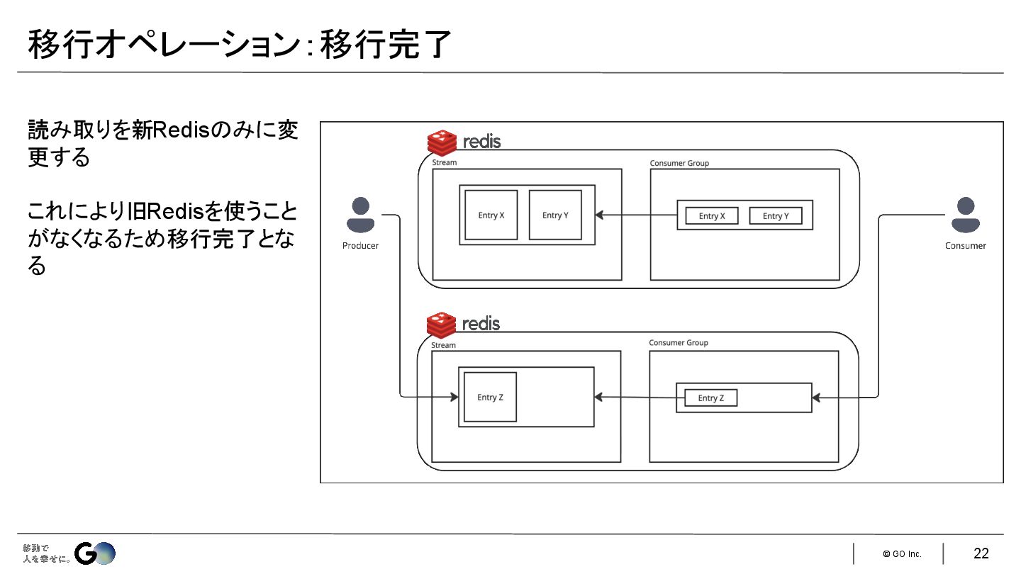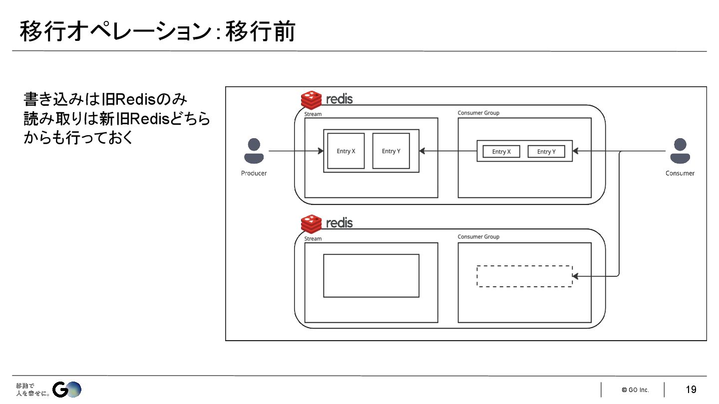 6. © GO Inc. 一般的な以下の3つの手法が使えない • アプリケーション側でダブルライト • SLAVEOFコマンドでデータを移行先Redisインスタンスにレプリケーションさせる • サービス自体をメンテナンスモードにして旧