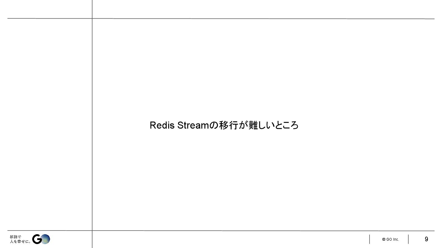 8. © GO Inc. 今回の割り切り(設計判断) 要件として落としたこと • 順序保証 ◦ 本来は重要だが、イベント数がそこまで多くないので不要と判断 •