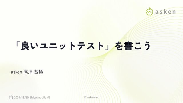 © asken.inc 「良いユニットテスト」を書こう 2024/12/20 Ebisu.mobile #8 asken 高津 基暢
