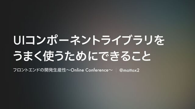 UIコンポーネントライブラリを うまく使うためにできること フロントエンドの開発生産性〜Online Conference〜 @mottox2