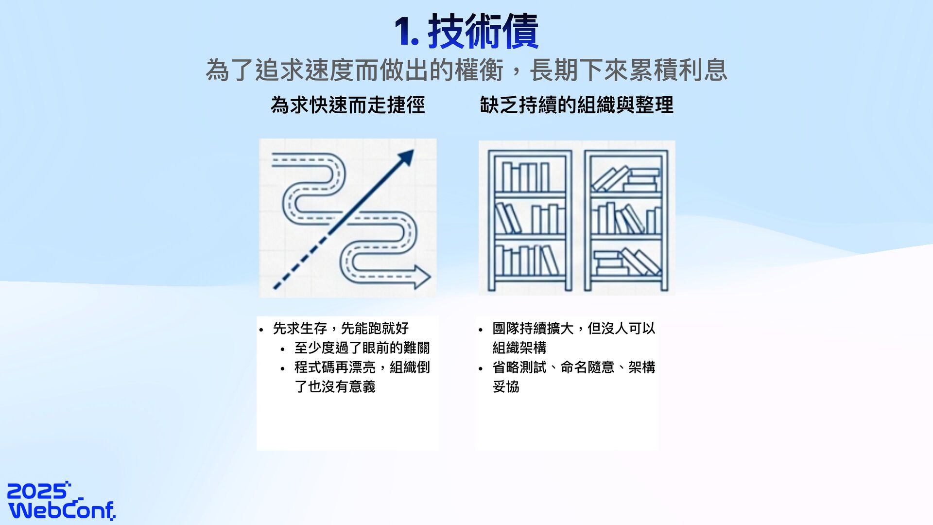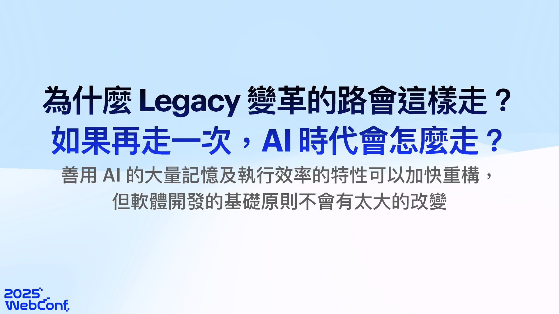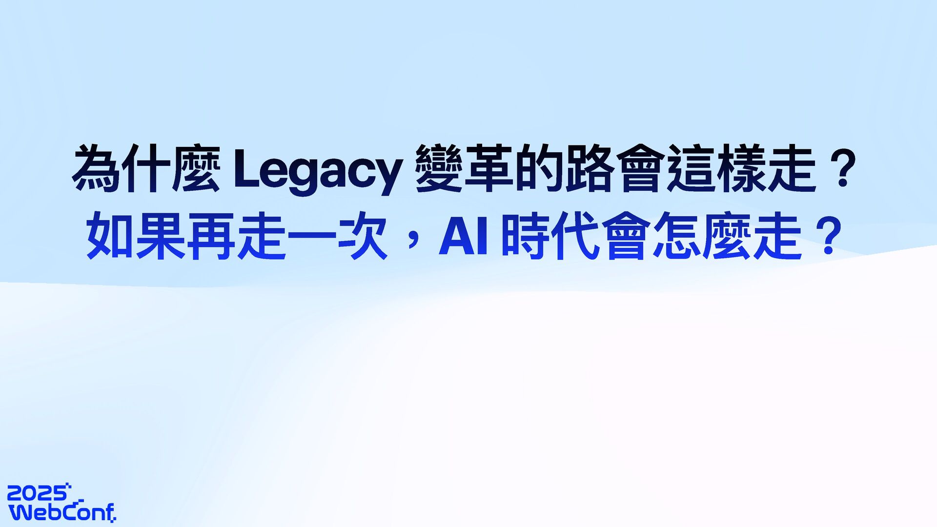 在軟體開發現場,面對沉澱多年的 Legacy Code,常常會陷入兩難:想改,又怕連帶影響整個系統;不改,又得持續承受技術債累積帶來的負擔。其實無論是在 AI 尚未普及的過去,還是今日各式 AI 輔助工具蓬勃發展,處理 Legacy Code 的核心原則始終如一——仍需要團隊共識、清晰流程以及足夠的驗證機制。然而在 AI 的協助下,我們能以更高的效率、更低的風險來面對這些挑戰。