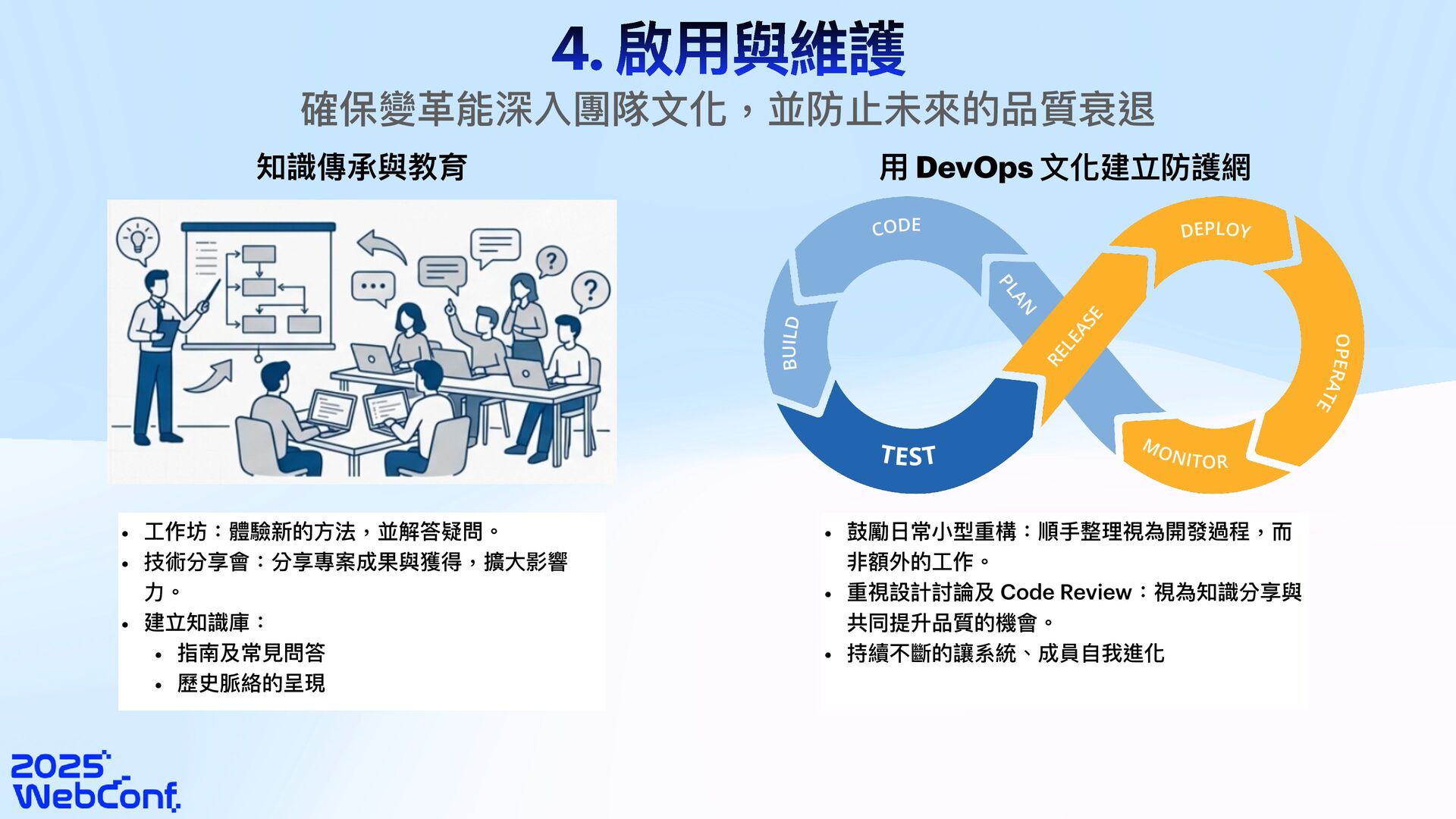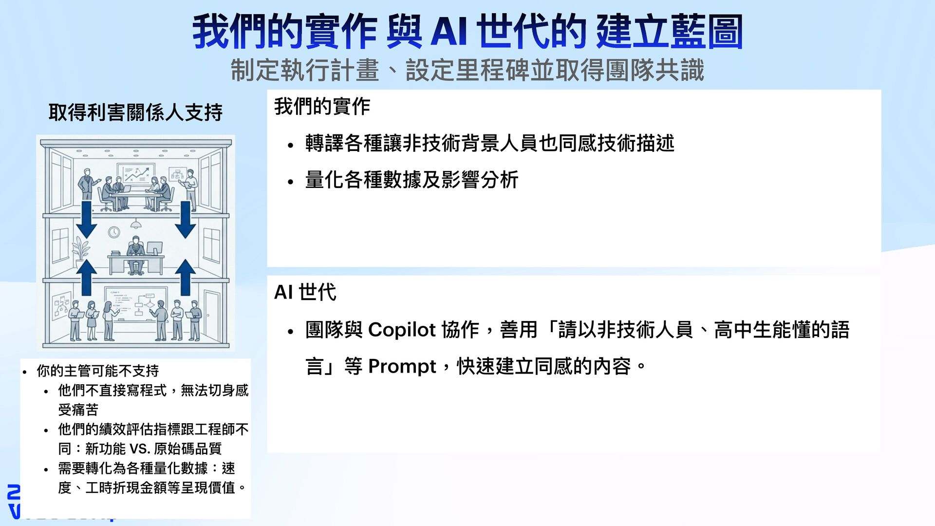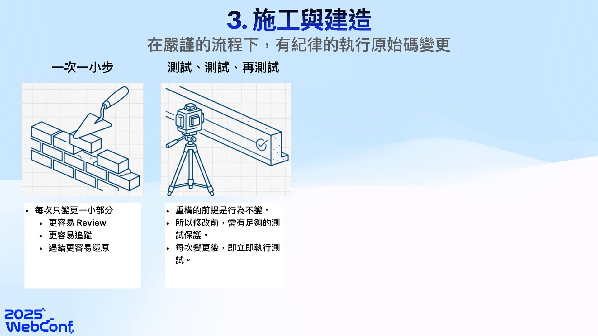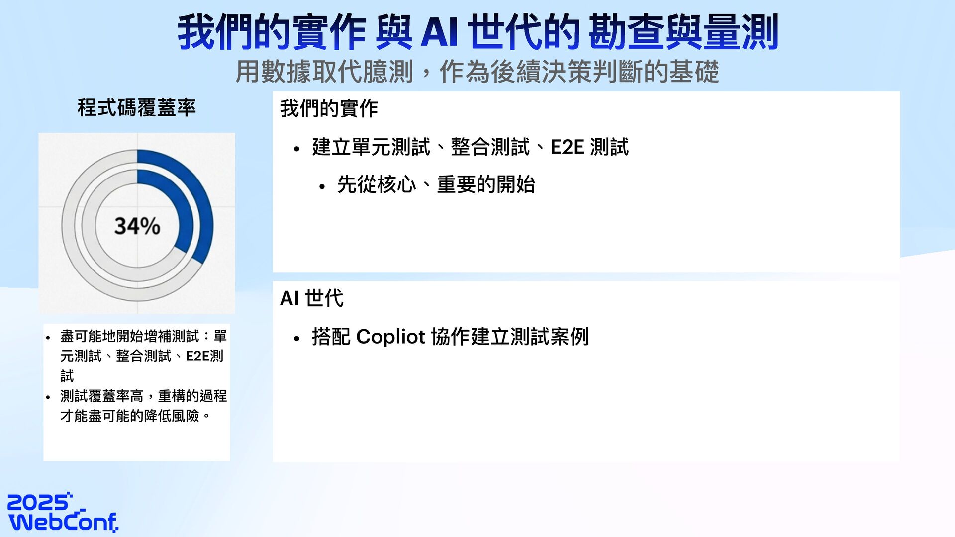 AI 介入後,如何在重構與維護過程中發揮助力,提升理解、驗證與調整的效率。