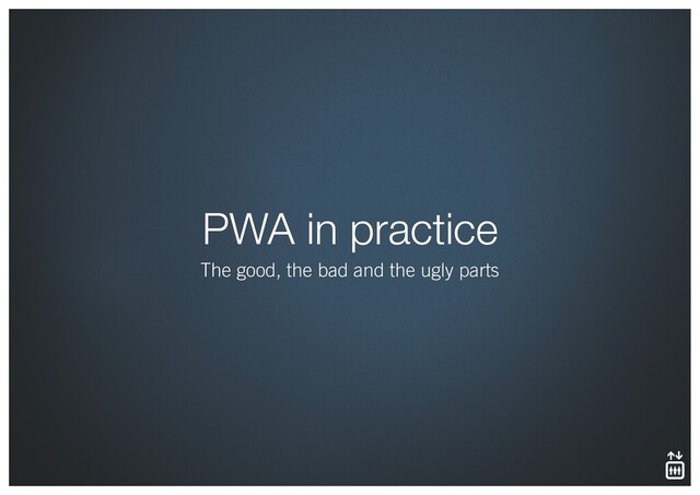 time there was no ServiceWorker support for Safari • No cache and fetch API for offline support • Not installable on iOS • No Camera / Audio access on installed iOS Versions • No background sync API The bad parts