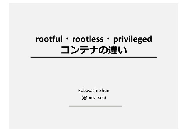 rootful・rootless・privileged コンテナの違い Kobayashi Shun (@moz_sec)
