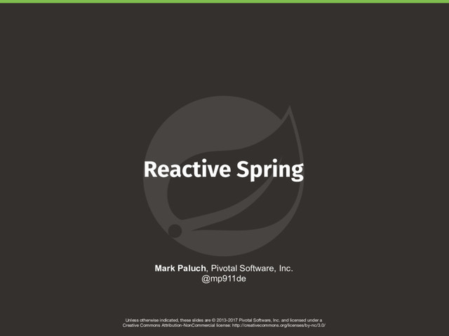 Inc. and licensed under a Creative Commons Attribution-NonCommercial license: http://creativecommons.org/licenses/by-nc/3.0/ Reactive Spring Mark Paluch, Pivotal Software, Inc. @mp911de