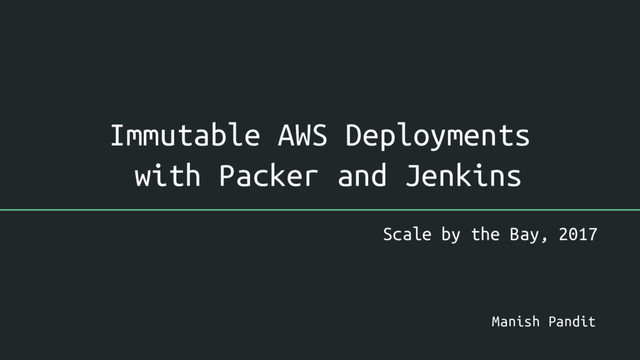 In this session I will talk about Immutable Deployments - which have become almost essential in the world of Microservices. As the frequency of deployments across multiple services increases with increasing granularity, it is critical to have repeatable, predictable and immutable deployments serving our customers. In practice, this is achieved via several DevOps tools. We will use Hashicorp Packer (packer.io) and Jenkins to build a simple, immutable AWS deployment of a hello-world microservice. Familiarity with AWS is recommended but not required for this talk.