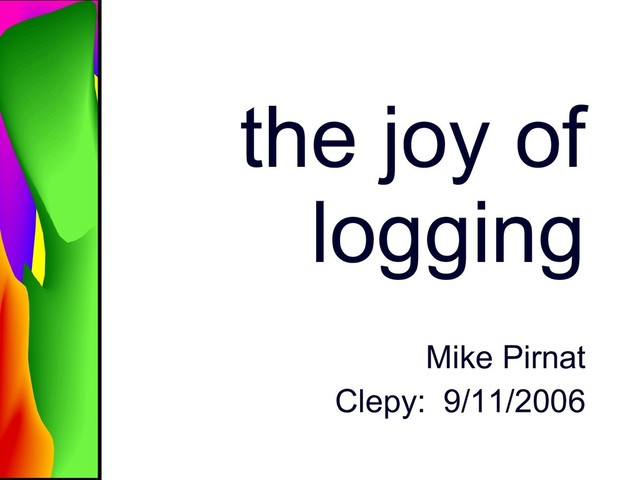 How to use Python's logging module for doing all kinds of crazy ninja logging magic (or just simple things too). Presented to ClePy on September 11, 2006.