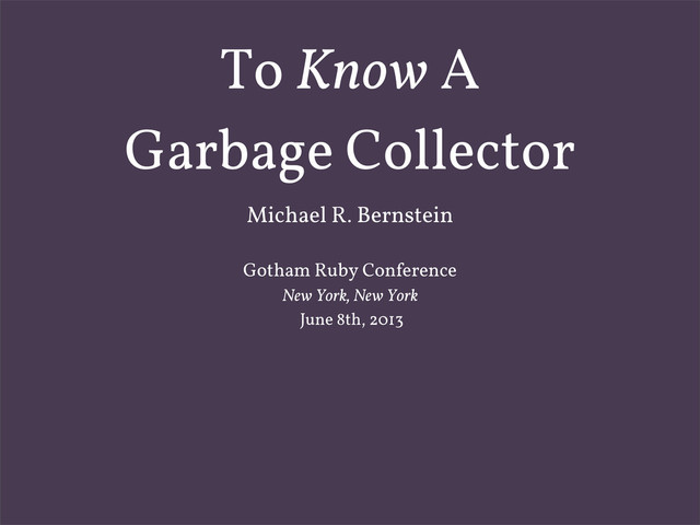T. Rajan. A uni!ied theory of garbage collection. In OOPSLA 2004, 2004, pages 50-68. • Cooper et. al. Teaching Garbage Collection without Implementing Compilers or Interpreters. In SIGCSE 2013, 2013, pages 385-390. • Robby Findler “The Many Faces of Dr. Scheme” http://www.eecs.northwestern.edu/~robby/ logos/ • Richard Jones, Antony Hosking, and Eliot Moss. The Garbage Collection Handbook: The Art of Automatic Memory Management. CRC Applied Algorithms and Data Structures. Chapman & Hall, August 2012, pages 375-416. • Richard Jones: Garbage Collection Bibliography http://www.cs.kent.ac.uk/people/staff/rej/gcbib/ gcbib.html • Henry Lieberman and Carl E. Hewitt. A real-time garbage collector based on the lifetimes of objects. AI Memo 569a, MIT, April 1981.