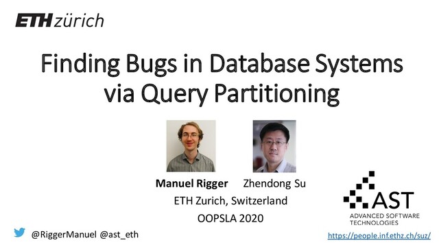 * FROM t0, t1 WHERE t0.c0 = t1.c0; t0.c0 t0.c1 Challenge: Finding a test oracle that can automatically validate the result set Incorrect result! https://bugs.mysql.com/bug.php?id=99122