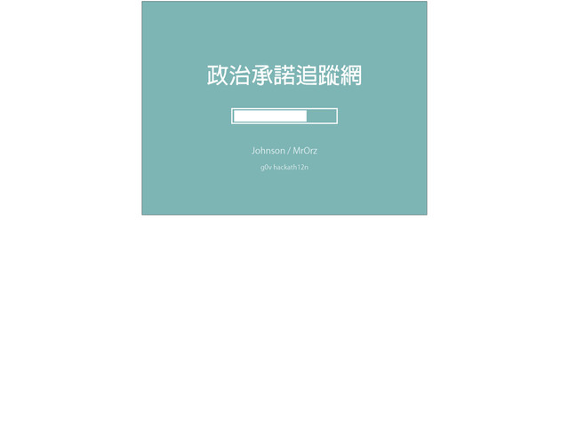 Ъ ݁طוፕᔳၣj 這個專案想要做的,則是希望可以做⼀一個協作型的的進度條。 當選舉承諾有什麼新的進展,⼤大家就能把相關新聞貼上來,並由⼤大家來認定這個承諾的完成度。