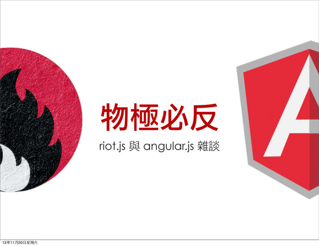 = function(name) { var item = { ... } items[item.id] = item; this.trigger("add", item); } this.remove = function(filter) { var els = this.items(filter); $.each(els, function() { delete items[this.id] }) this.trigger("remove", els); } $.observable(this); } $(function() { / 1. Initialize / var todo = new Todo(); / 2. Listen to user events / $("#new-‐todo").keyup(function(e) { var val = $.trim(this.value); if (e.which == 13 && val) { todo.add(val); this.value = ""; } }); $("#clear-‐completed").click(function() { todo.remove("completed"); }) // ... / 3. Listen to model events / // an entry was edited todo.on("add", add).on("remove", function(items) { $.each(items, function() { $("#" + this.id).remove() }); }); // ... }) ࣄ݅ܥ౷ / Observer pattern trigger(eventName, args...) on(eventName, fn) off(eventName) 13年11⽉月30⽇日星期六
