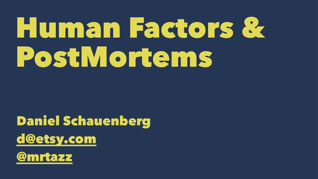 This talk will explain how postmortems at Etsy are conducted and how we maintain and scale the process as the team grows and new people start. It will go over the tools we built and utilize to make postmortems efficient and also share the learnings from each one with all the people in the company.