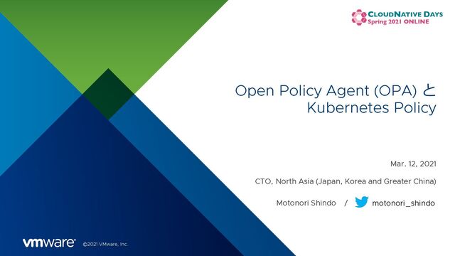 1. ©2021 VMware, Inc. Open Policy Agent (OPA) と Kubernetes Policy