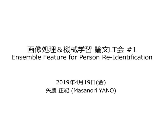 画像処理&機械学習 論文LT会 #1 Ensemble Feature for Person Re-Identification 2019年4月19日(金) 矢農