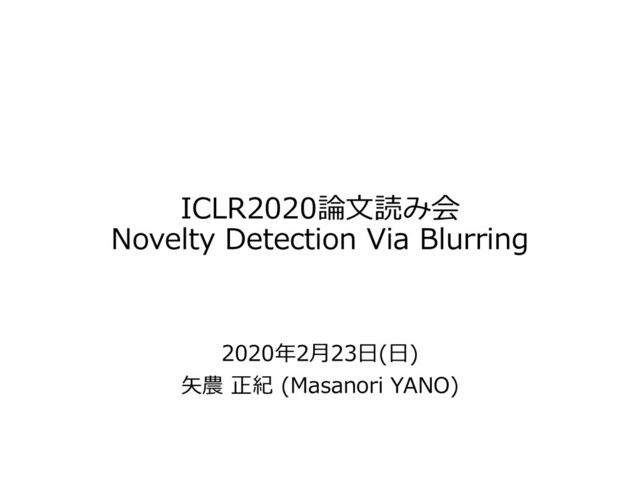 ICLR2020論文読み会 Novelty Detection Via Blurring 2020年2月23日(日) 矢農 正紀 (Masanori YANO)
