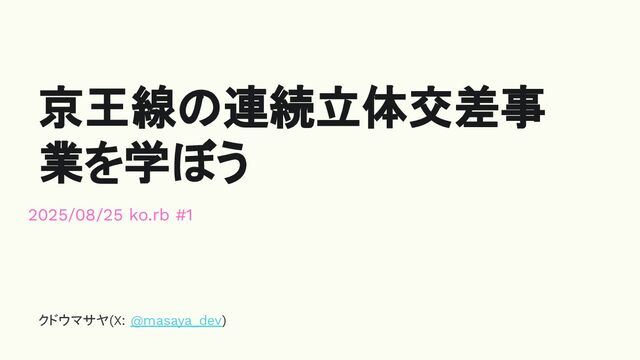 京王線の連続立体交差事 業を学ぼう 2025/08/25 ko.rb #1 クドウマサヤ(X: @masaya_dev)