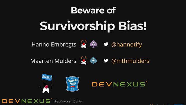Most talks on a typical conference schedule contain success stories of technology. This could lead to survivorship bias. Survivorship bias causes you to draw false conclusions because you mostly heard about successes, but hardly ever about failures. Yet failures provide us with lots of valuable knowledge: when not to apply a certain technique, pattern or process.