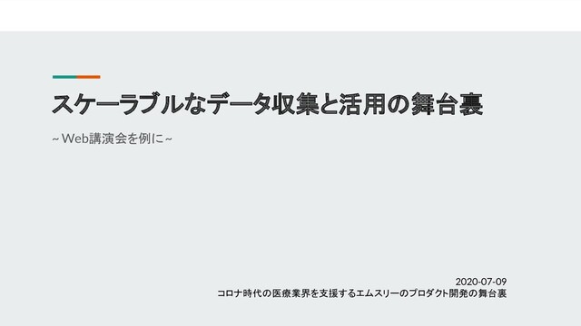 スケーラブルなデータ収集と活用の舞台裏 ~ Web講演会を例に ~ 2020-07-09 コロナ時代の医療業界を支援するエムスリーのプロダクト開発の舞台裏