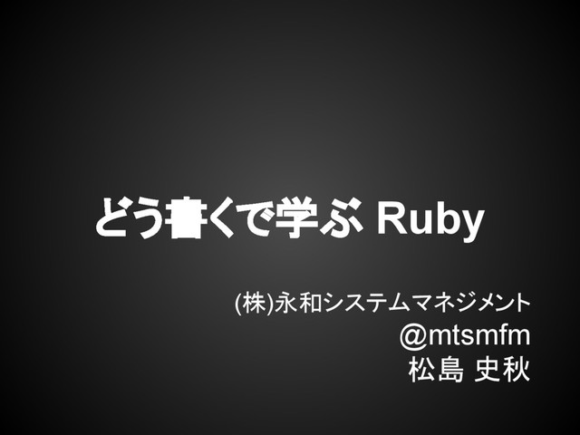 (株)永和システムマネジメント @mtsmfm 松島 史秋 どう書くで学ぶ Ruby