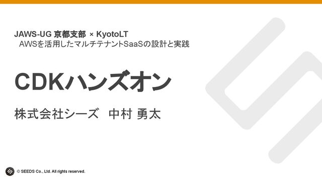 1. © SEEDS Co., Ltd. All rights reserved. CDKハンズオン 株式会社シーズ 中村 勇太
