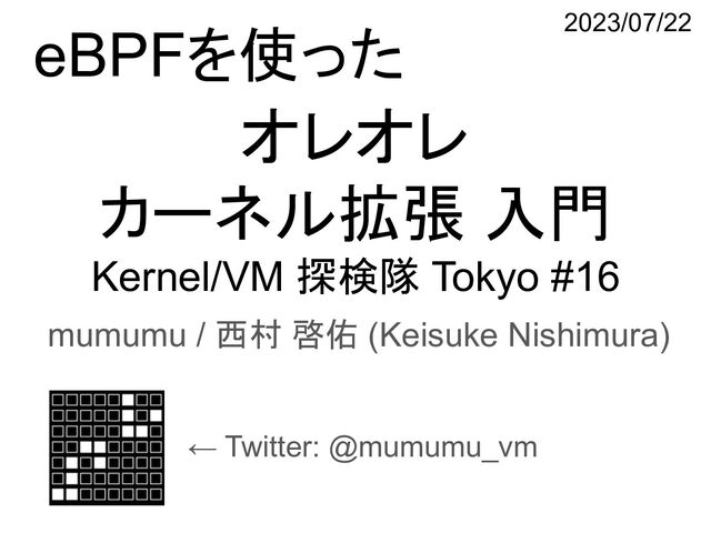 啓佑 (Keisuke Nishimura) ← Twitter: @mumumu_vm eBPFを使った 2023/07/22