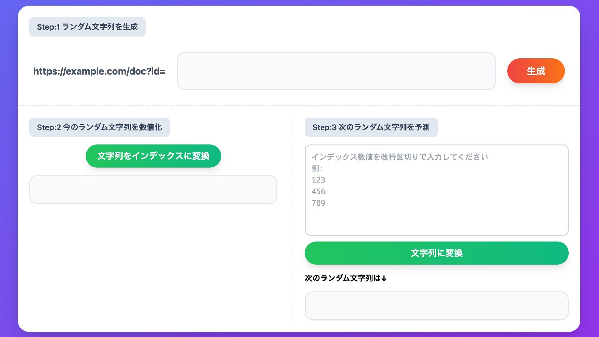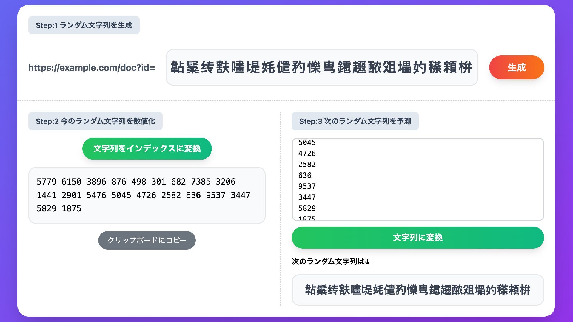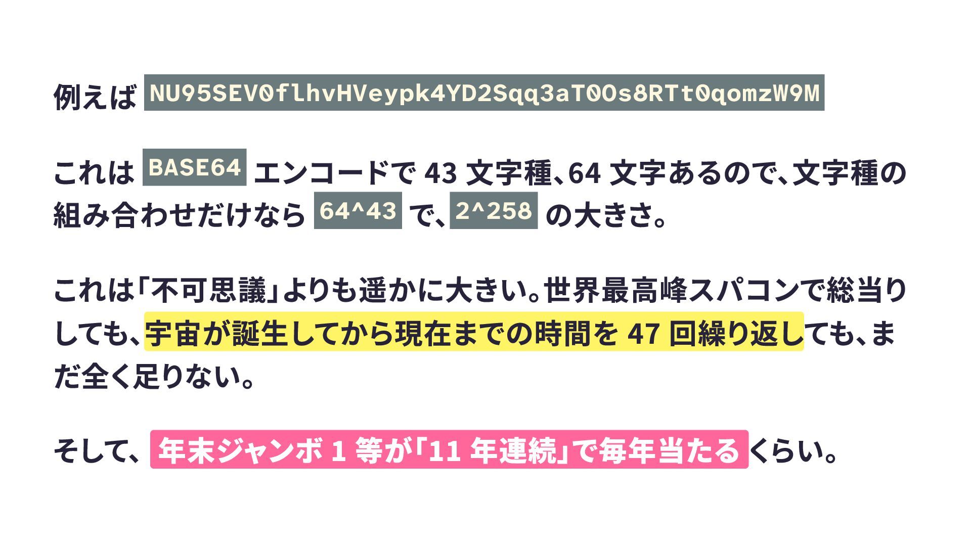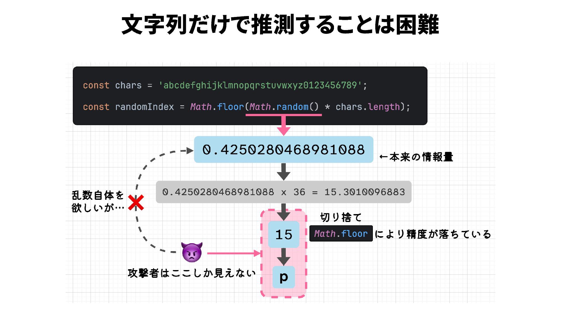 心配なこと 1. *悪意ある人*がランダム文字列を*予測*できるのでは 2. *たまたま*ランダム文字列を*当てちゃう運良すぎ*な人いるのでは