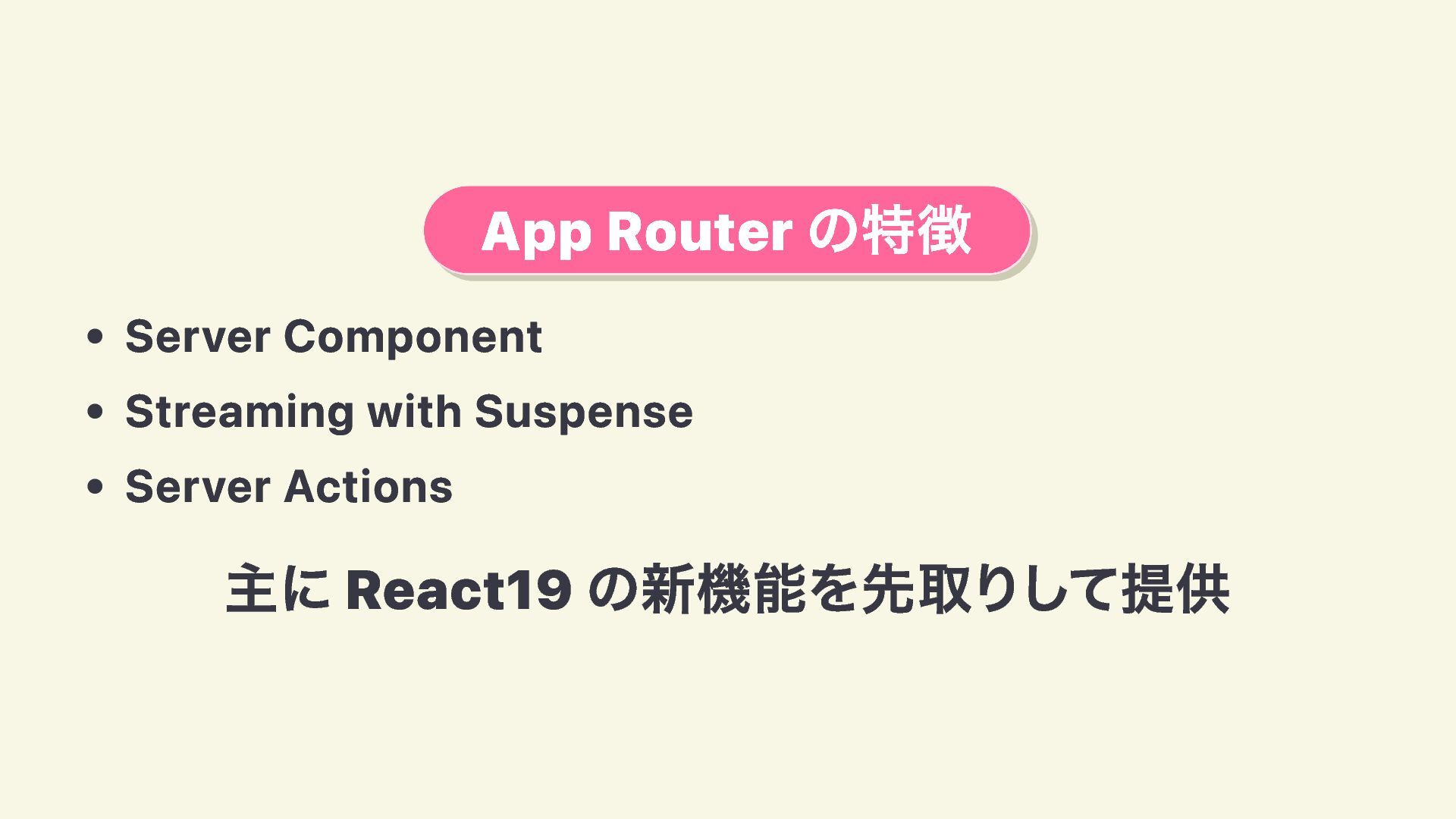 Server Component Streaming with Suspense Server Actions 主に React19 の新機能を先取りして提供
