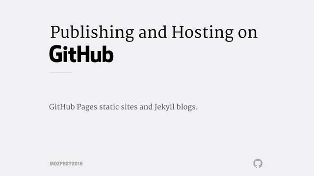 MOZFEST2015 ! GitHub Pages static sites and Jekyll blogs. "