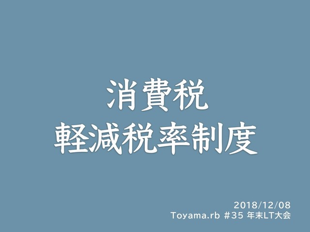 消費税 軽減税率制度 2018/12/08 Toyama.rb #35 年末LT大会