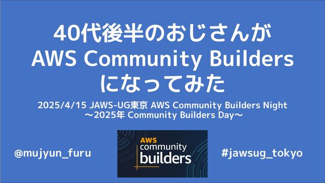 40代後半のおじさんが AWS Community Builders になってみた 2025/4/15 JAWS-UG東京 AWS Community Builders