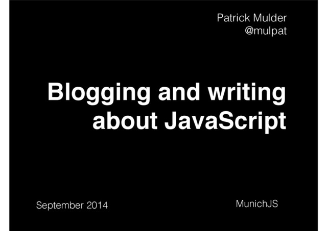 Blogging and writing about JavaScript MunichJS Patrick Mulder @mulpat September
