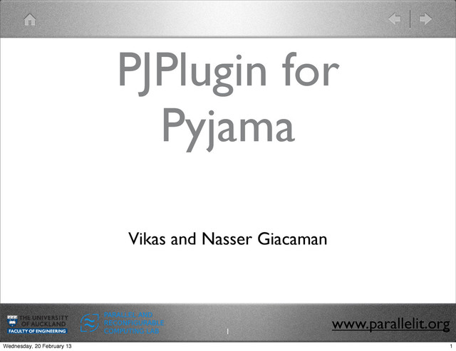 www.parallelit.org PJPlugin for Pyjama 1 Vikas and Nasser Giacaman 1