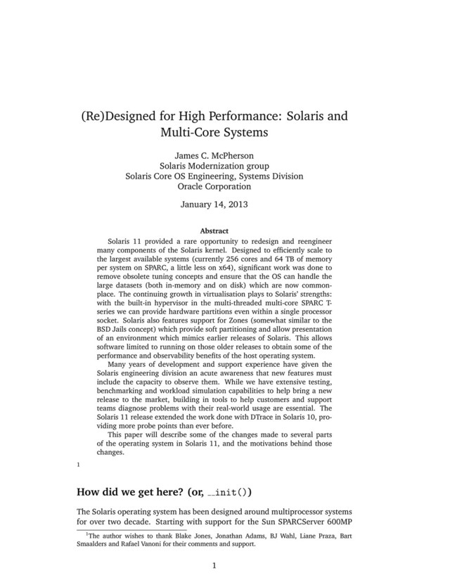 (12) (2012) 40, URL http://doi.acm.org/10.1145/ 2405116.2413037. [Gregg(2010)] B. Gregg, Visualizing System Latency, ACM Queue 8 (5) (2010) 30, URL http://doi.acm.org/10.1145/1794514.1809426. [Brown(2007)] D. Brown, A Conversation with Jeff Bonwick and Bill Moore, ACM Queue: Tomorrow’s Computing Today 5 (9), URL http://queue. acm.org/detail.cfm?id=1317400. [Bonwick(2007)] J. Bonwick, ZFS, in: LISA, USENIX, URL http://www. usenix.org/events/lisa07/htgr_files/bonwick_htgr.pdf, 2007. [Cantrill et al.(2004)Cantrill, Shapiro, and Leventhal] B. Cantrill, M. W. Shapiro, A. H. Leventhal, Dynamic Instrumentation of Production Systems, in: USENIX Annual Technical Conference, General Track, USENIX, 15–28, URL http://www.usenix.org/publications/library/ proceedings/usenix04/tech/general/cantrill.html, 2004. [Bonwick(2004)] J. Bonwick, 128-bit storage: are you high? URL https:// blogs.oracle.com/bonwick/entry/128_bit_storage_are_you. [Cantrill(2006)] B. Cantrill, Hidden in plain sight, ACM Queue 4 (1) (2006) 26–36, URL http://doi.acm.org/10.1145/1117389.1117401. [Cantrill and Bonwick(2008)] B. Cantrill, J. Bonwick, Practice: Real-world concurrency, Communications of the ACM 51 (11) (2008) 34–39, ISSN 0001-0782 (print), 1557-7317 (electronic), doi:\bibinfo{doi}{http:// doi.acm.org/10.1145/1400214.1400227}. [Cantrill et al.(2008)Cantrill, Shapiro, and Leventhal] B. M. Cantrill, M. W. Shapiro, A. H. Leventhal, Solaris Kernel Development URL http://www. sun.com/bigadmin/content/dtrace/dtrace_usenix.pdf. [Oracle Corporation(2012b)] Oracle Corporation, Oracle Solaris Administra- tion: ZFS File Systems, vol. 821-1448-12 of Oracle Solaris 11 Documenta- tion Library, Oracle Press, 500 Oracle Parkway, Redwood City, CA 94065, U.S.A., URL http://docs.oracle.com/cd/E23824_01/html/821-1448/, 2012b. [Oracle Corporation(2011)] Oracle Corporation, Oracle Solaris 11 11/11 - What’s New, pdf, URL http://www.oracle.com/ technetwork/server-storage/solaris11/documentation/ solaris11-whatsnew-201111-392603.pdf, 2011. [McDougall and Mauro(2007)] R. McDougall, J. Mauro, Solaris internals: Solaris 10 and OpenSolaris kernel architecture, Sun Microsystems Press/Prentice Hall, Upper Saddle River, NJ, USA, second edn., ISBN 0-13-148209-2 (hardcover), URL http://www.loc.gov/catdir/toc/ ecip0613/2006015114.html, 2007. 14