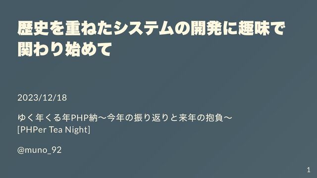 歴史を重ねたシステムの開発に趣味で 関わり始めて 2023/12/18 ゆく年くる年PHP 納〜今年の振り返りと来年の抱負〜 [PHPer Tea Night] @muno_92 1
