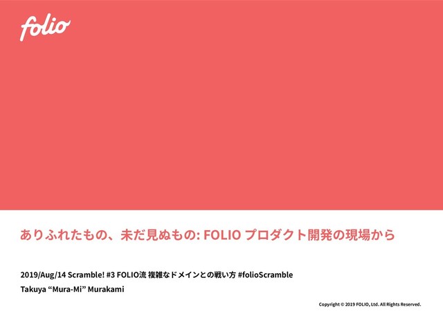 FOLIO 開催のイベント「Scramble! #3 FOLIO 流 複雑なドメインとの戦い方」で行ったトーク「ありふれたもの、未だ見ぬもの: FOLIO プロダクト開発の現場から」にて利用したスライドです。