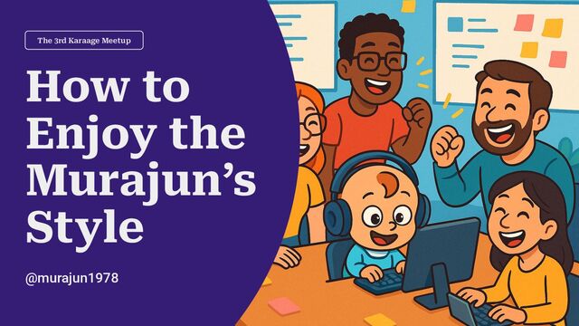 自己紹介 NAME: むらじゅん (@murajun1978) COMMUNITY: Shinosaka.rb (Co-Founder), Ruby関西, Camp.rb JOB: