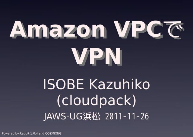 Amazon VPCで VPN Amazon VPCで VPN ISOBE Kazuhiko (cloudpack) JAWS-UG浜松