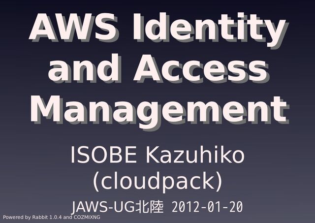 ISOBE Kazuhiko (cloudpack) JAWS-UG北陸 2012-01-20 Powered by Rabbit 1.0.4 and COZMIXNG