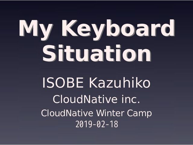 My Keyboard Situation My Keyboard Situation ISOBE Kazuhiko CloudNative inc.